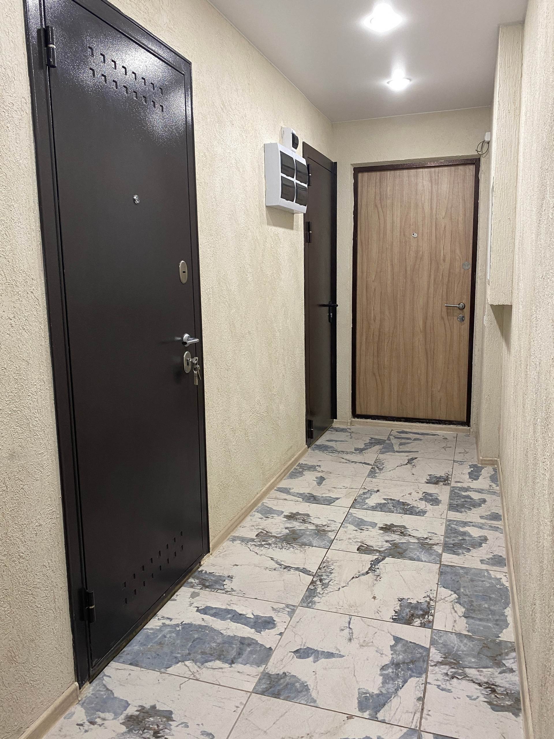 окно пластиковое, потребуется ремонт санузла. Новая входная дверь.