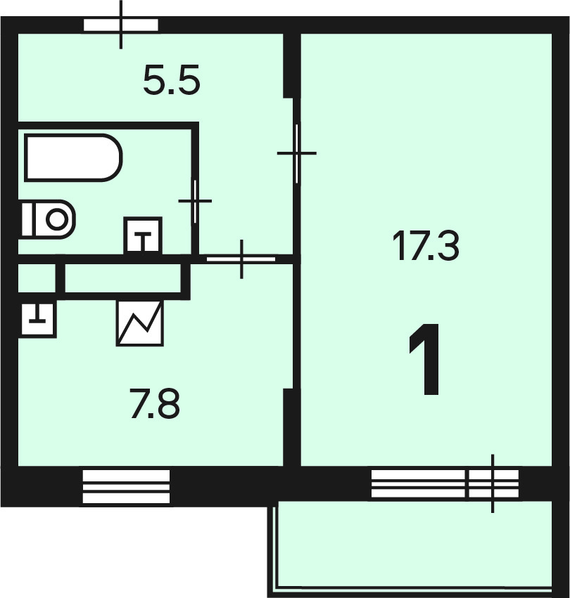 Жилая площадь 17.3 м2