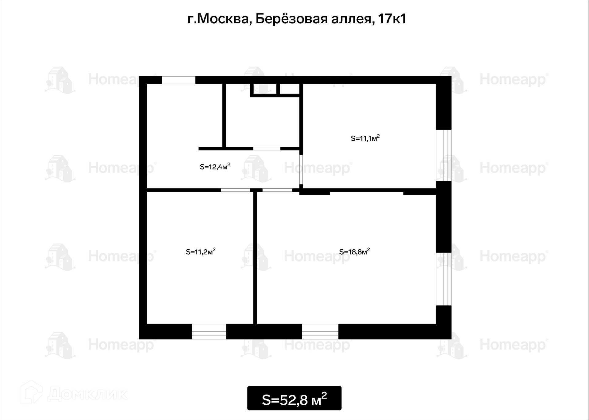 2-комнатная квартира, 52.8 м2, этаж 3 / 11, на продажу в Москве, Берёзовая аллея, 17к1