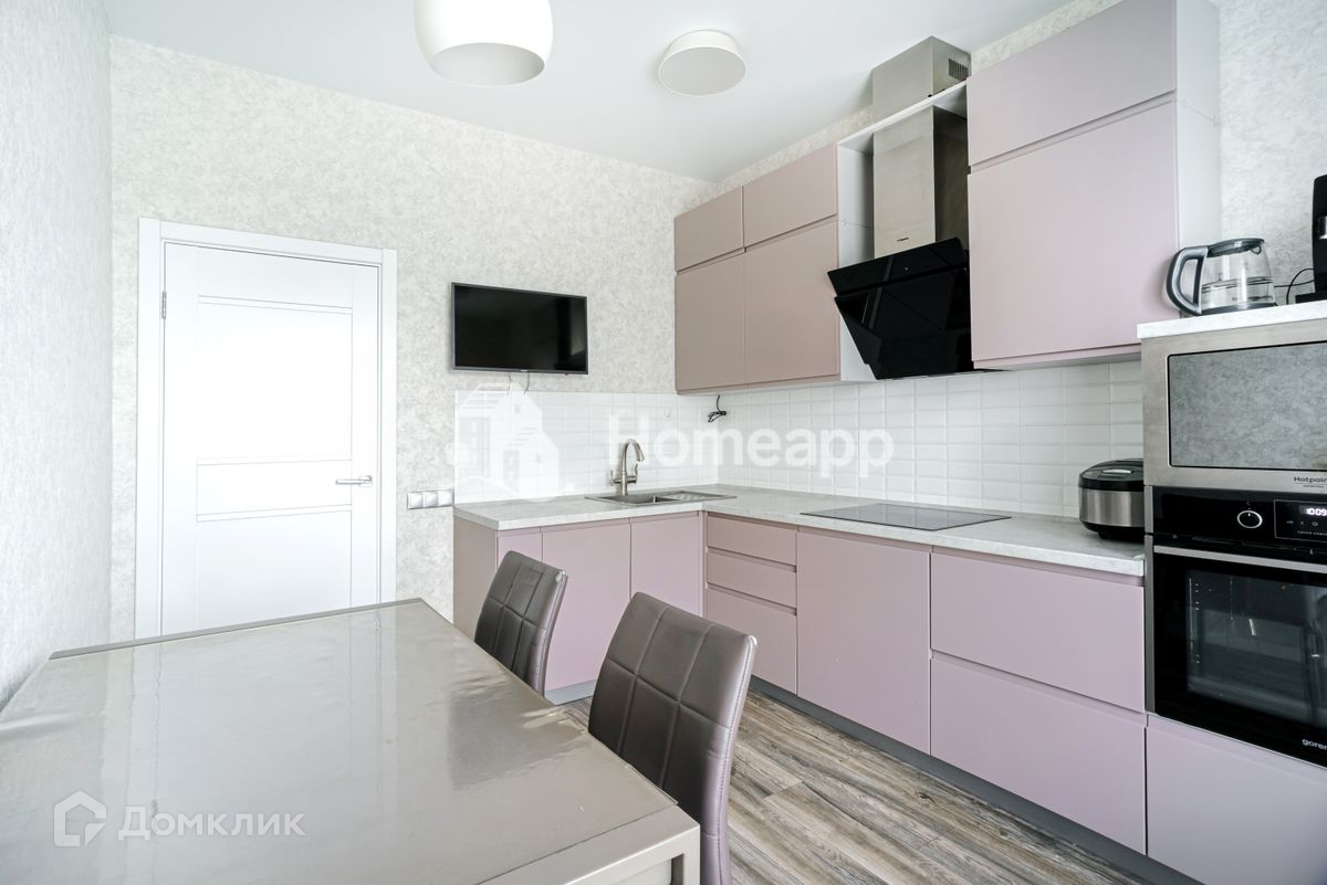 Удобная планировка: просторная кухня, 2 изолированные комнаты, совмещённый санузел. Имеется ниша для встроенного шкафа. Квартира полностью укомплектована бытовой техникой: варочная поверхность, духовой шкаф, вытяжка, микроволновая печь, посудомоечная машина, стиральная машина; установлено 2 кондиционера.