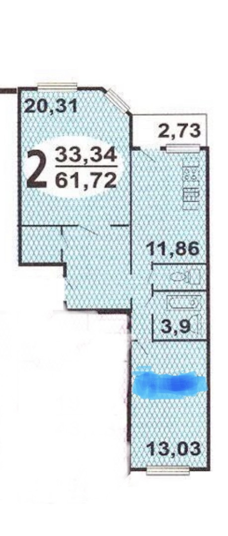 Общая площадь 61.7 м2