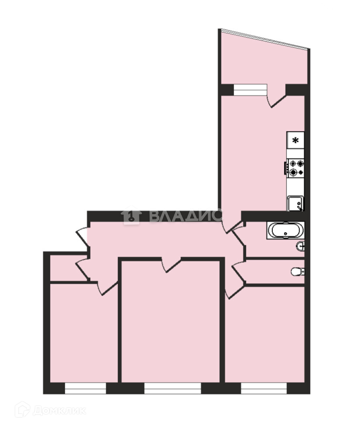 Объект: 3-комнатная квартира, площадью - 60,1 м2 (без учета лоджии),