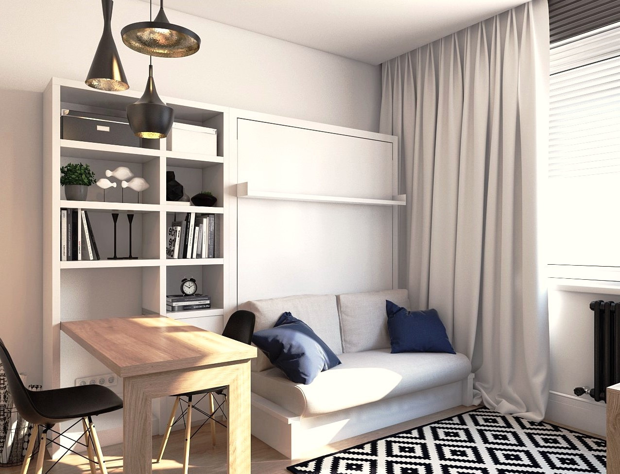 Вашему вниманию предлагается уютная студия на высоком первом этаже кирпичного дома. В доме был капитальный ремонт с заменой стояков, труб и батарей отопления. На фото пример дизайна.