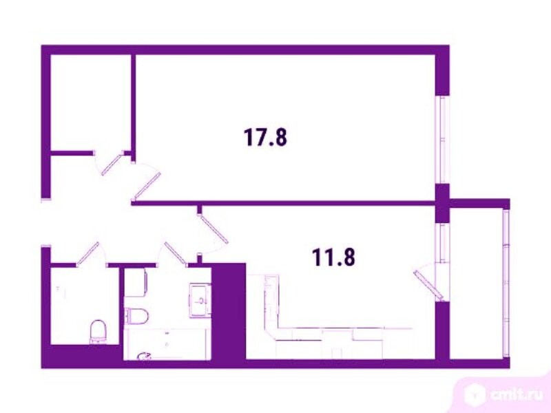 Общая площадь 42.5 м2