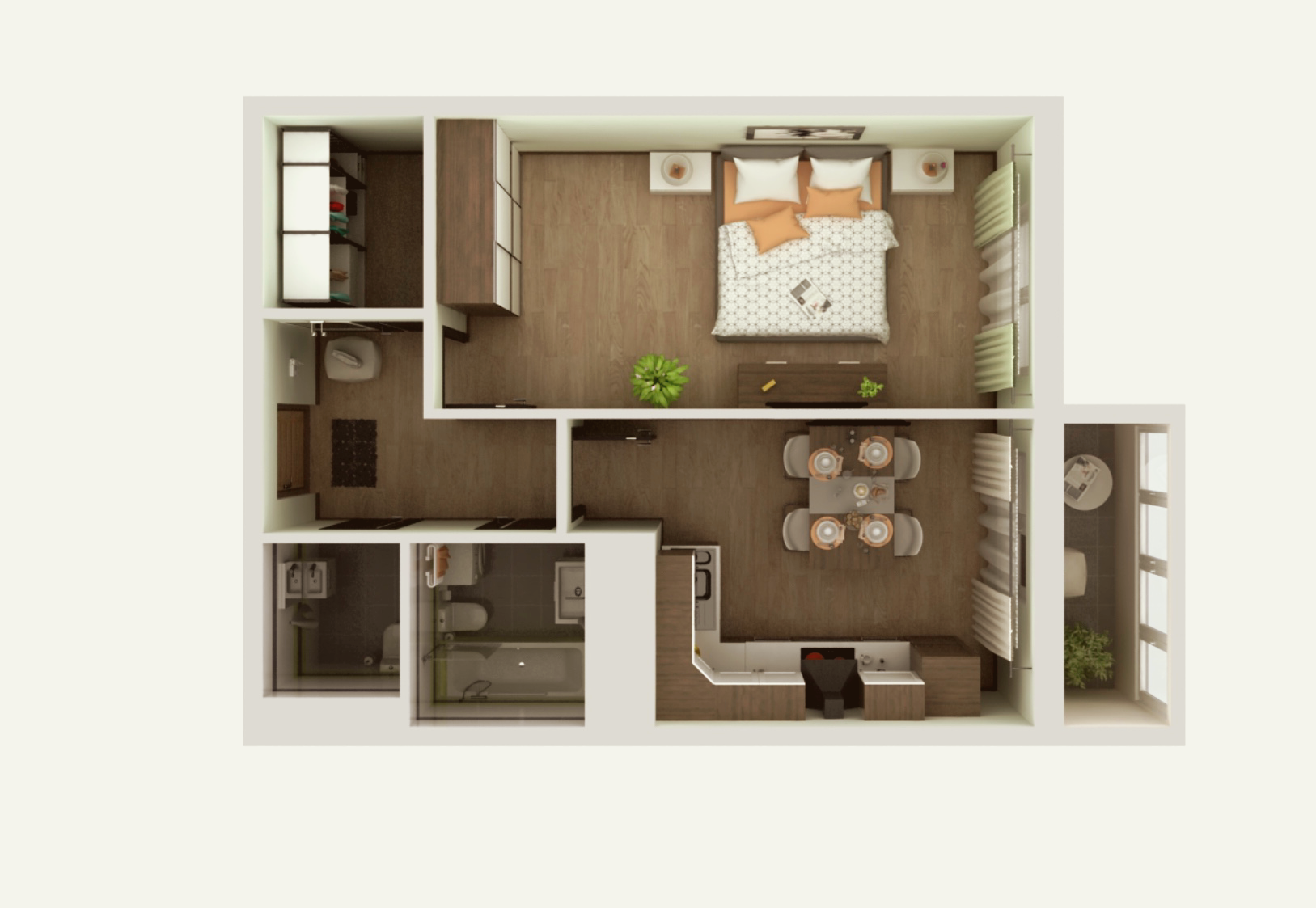 В квартире выполнена предчистовая отделка White Box. Удобная современная планировка квартиры  предусматривает просторную гардеробную и выход на большую панорамную лоджию из кухни. В квартире установлены 4-х камерные стеклопакеты, которые обеспечат вам тепло и тишину в доме.