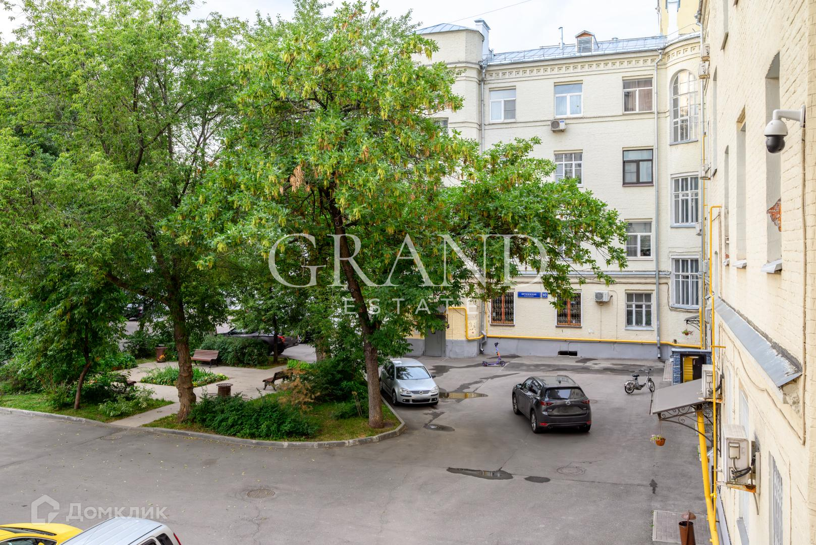 Парковка во дворе за шлагбаумом.