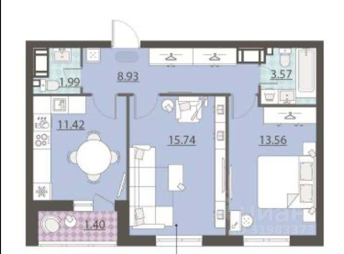 Общая площадь 54.6 м2