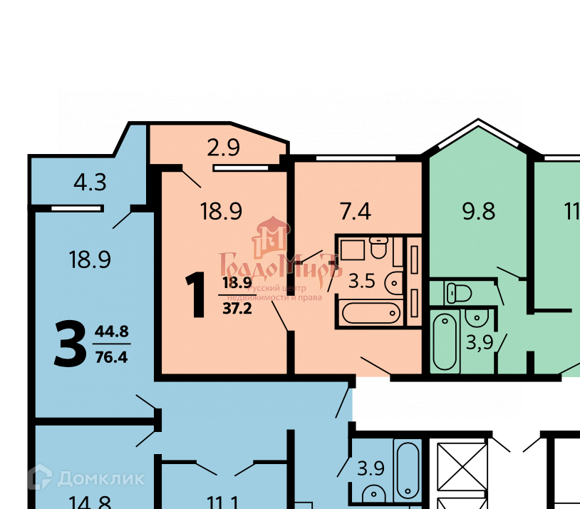 Жилая площадь 18 м2