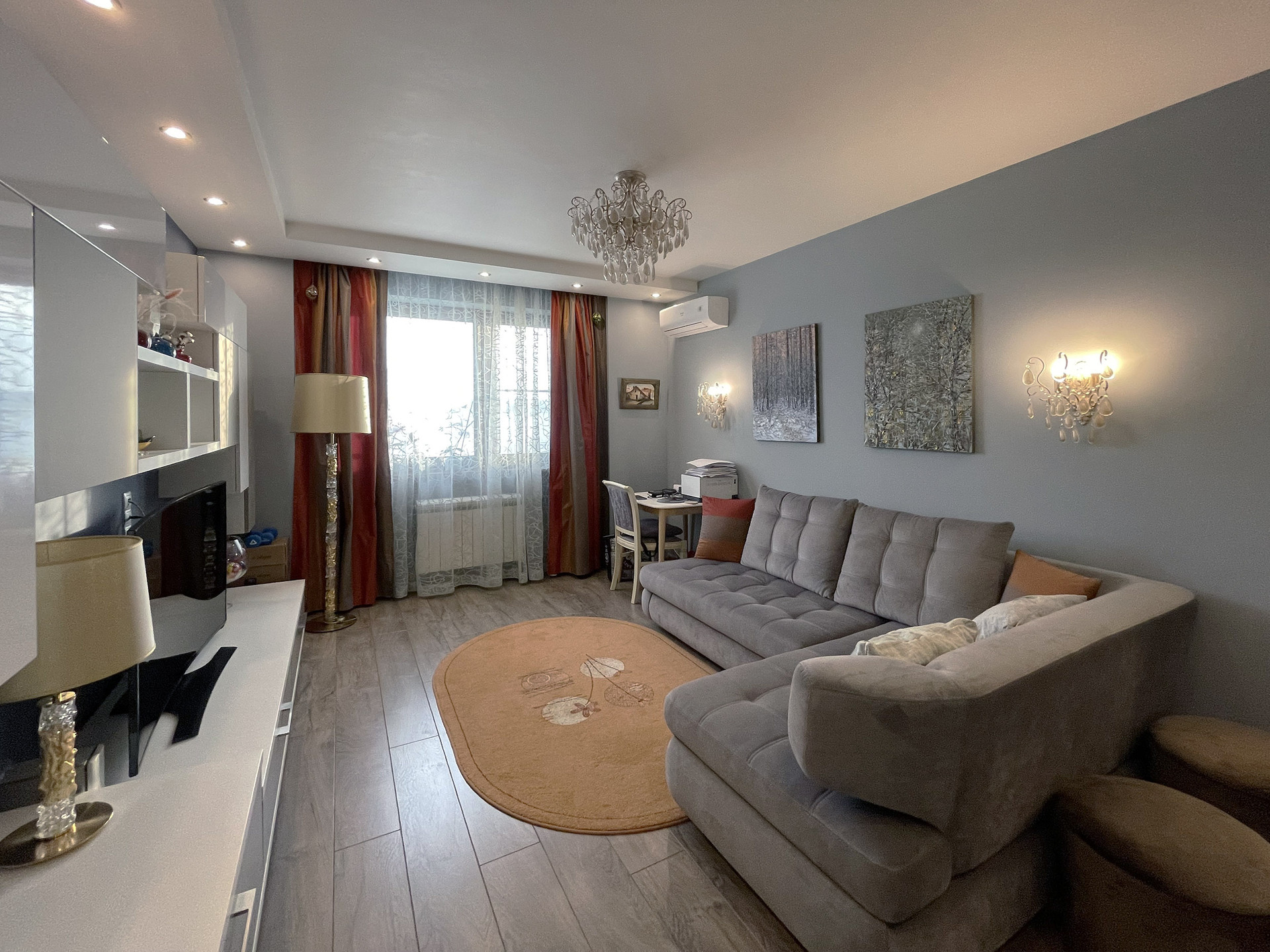 В квартире выполнен прекрасный ремонт, дизайн-проект, в отделке использовались только экологичные материалы.