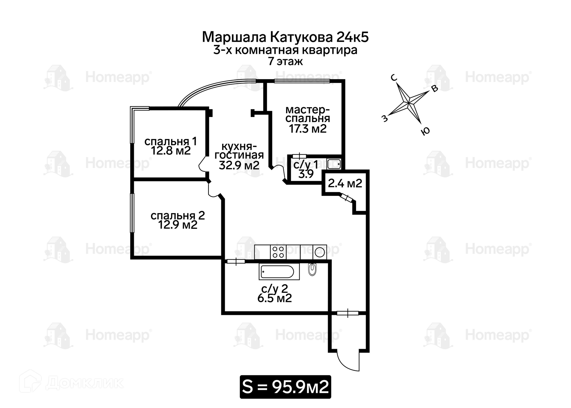 Общая площадь 95.9 м2
