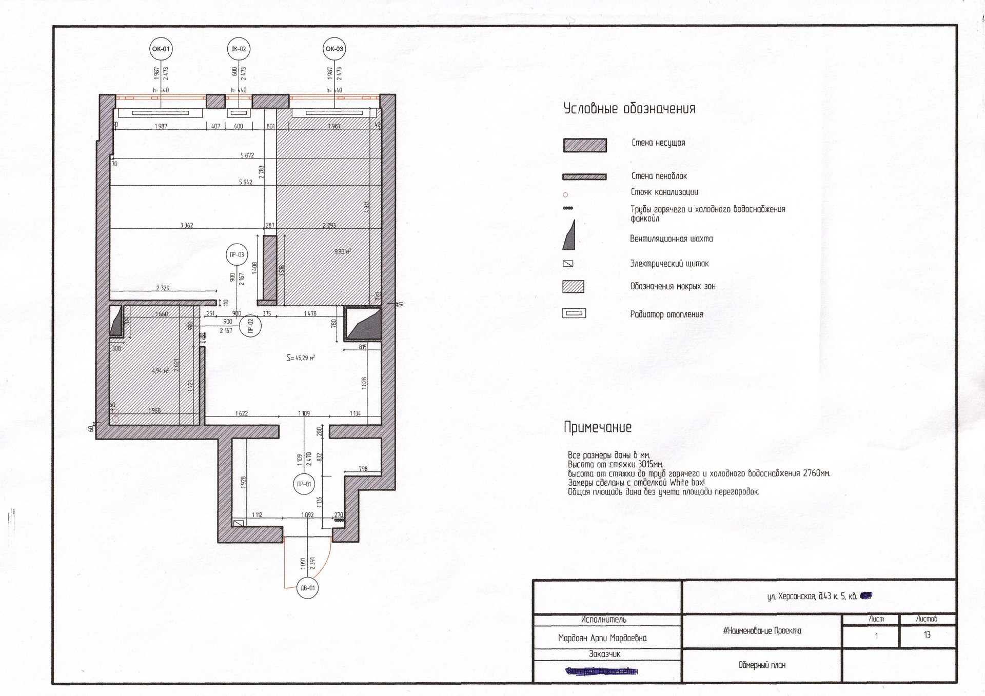 Общая площадь 45 м2