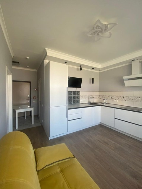 Функциональная планировка - просторная кухня с обеденной зоной, изолированная спальня с гардеробной, совмещённый санузел, удобная прихожая.