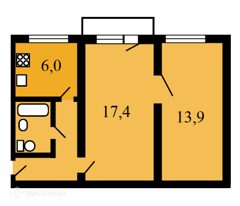 Общая площадь 43 м2