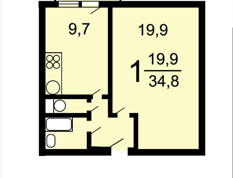 Общая площадь 34.6 м2
