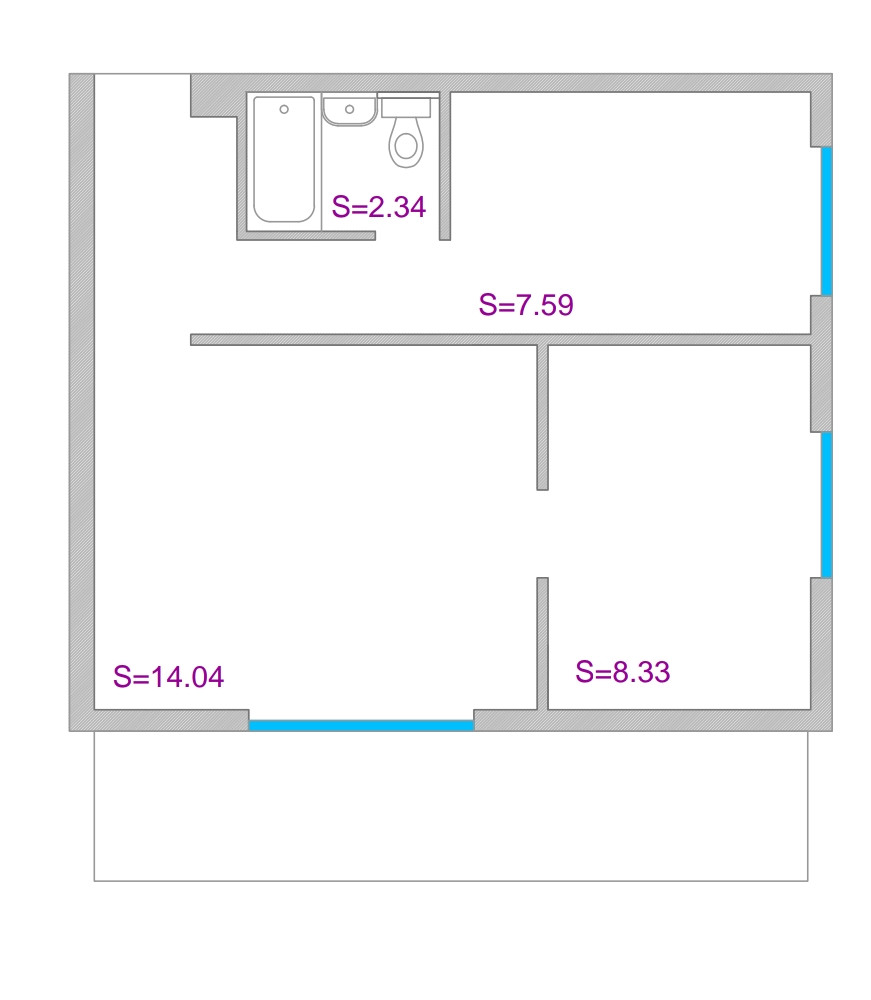 Балкон, лоджия 1 балкон