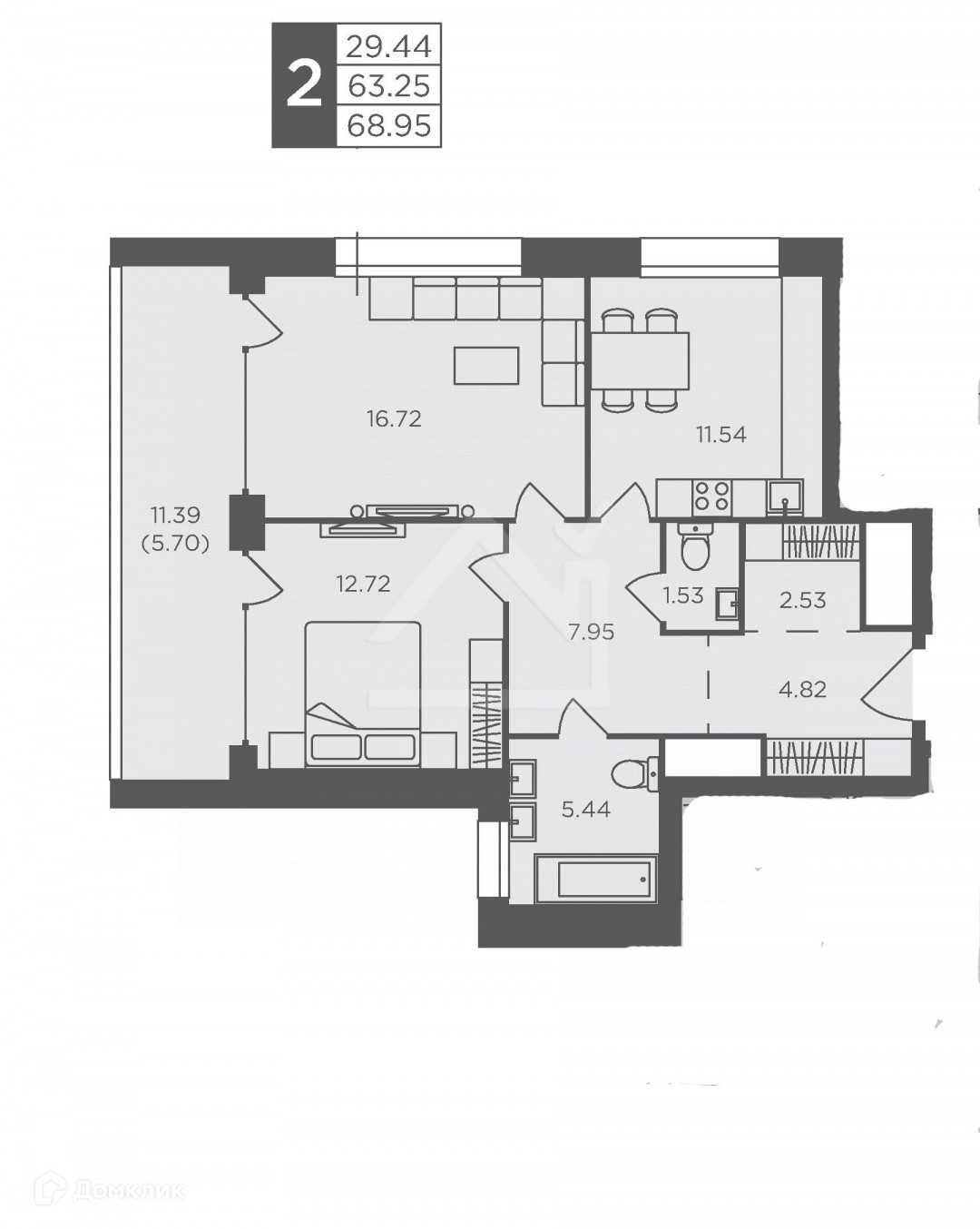 Общая площадь 68.95 м2