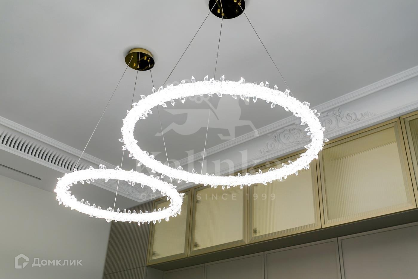 По всему периметру помещений теневой профиль с подсветкой.