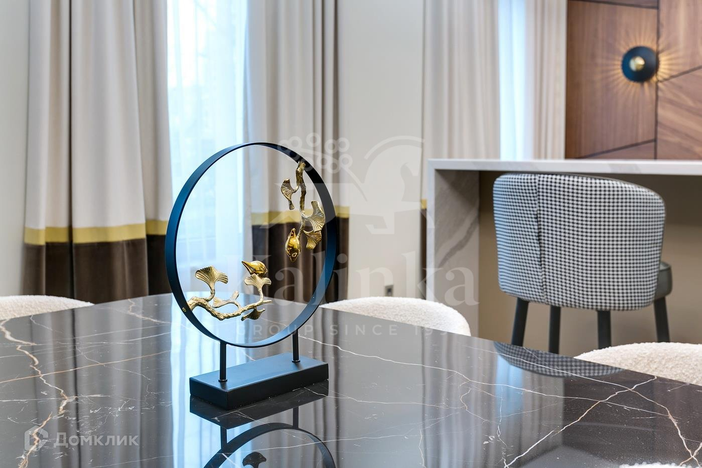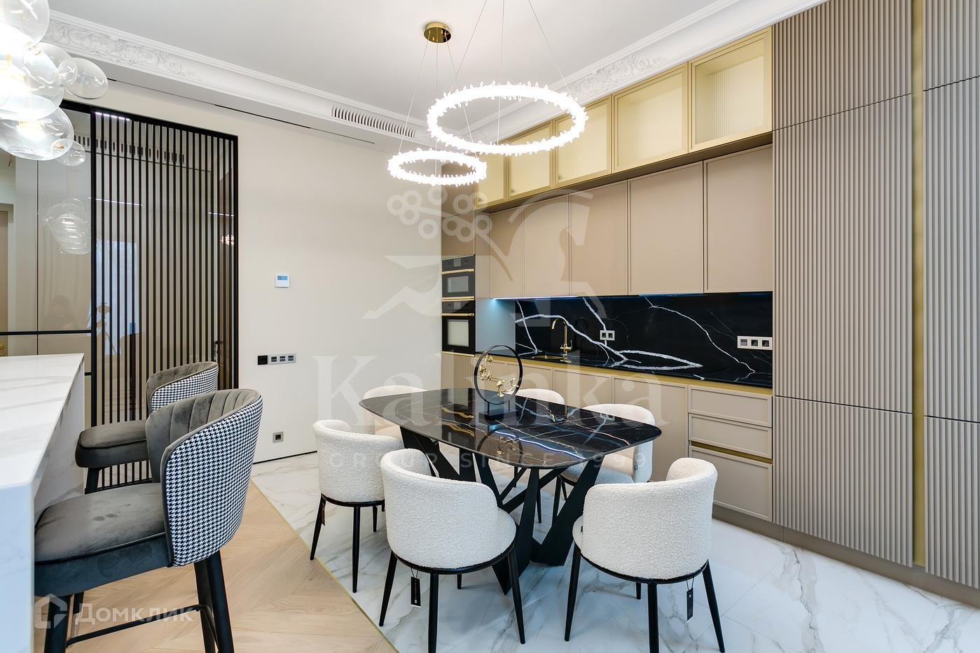 Обеденная зона – стол от итальянской фабрики Cattelan Italia, стулья от голландского премиального бренда Eichholtz.