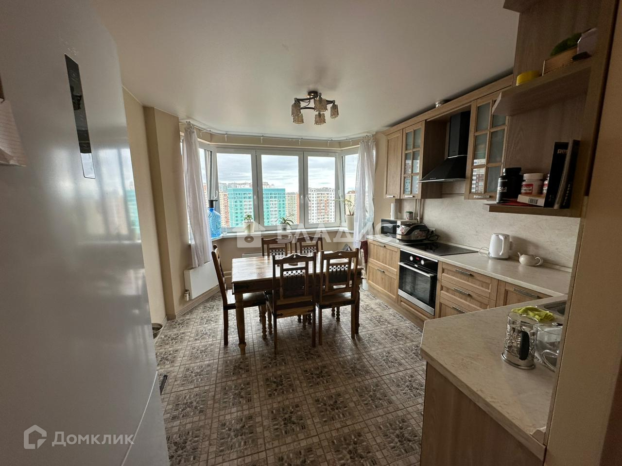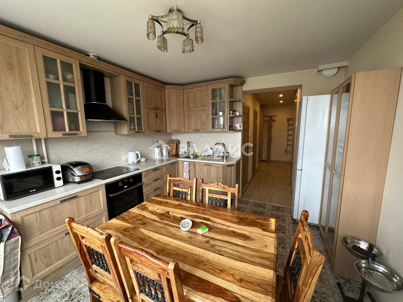 - На кухне имеется встроенный гарнитур с посудомойкой, варочной поверхностью, духовкой и вытяжкой, что облегчает использование кухонных приборов.