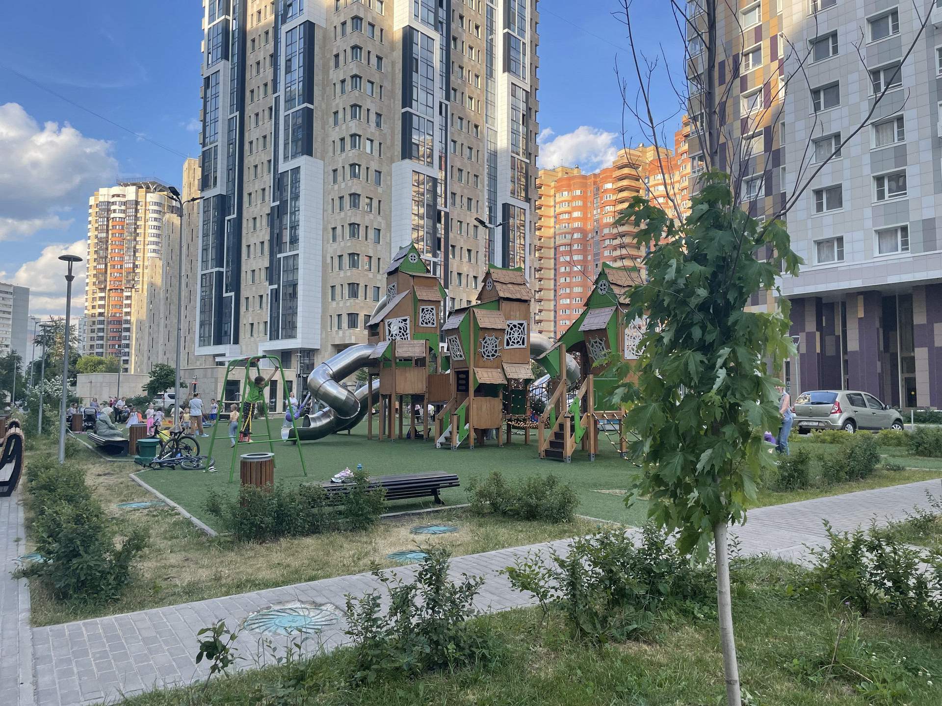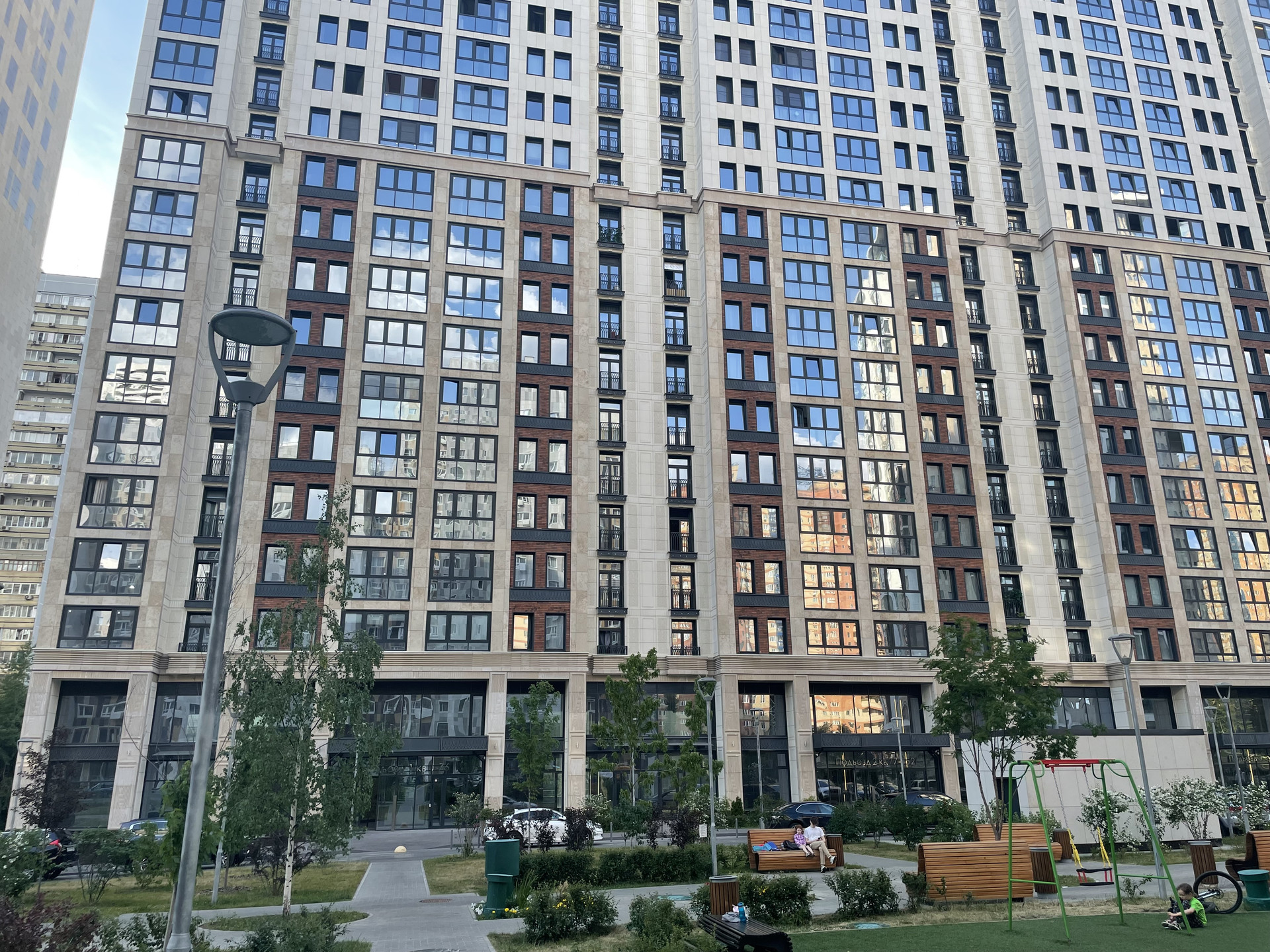 О жилом комплексе: благоустроенная зеленая территория комплекса с внутренним двором без машин, огорожена, круглосуточная охрана, видеонаблюдение, консьерж, Подземный паркинг, въезд через КПП. На территории ЖК находятся: аптека, салон красоты, стоматология, супермаркет. Единое благоустройство жилого комплекса включает в себя: велосипедные и пешеходные дорожки, детские и спортивные площадки, зоны отдыха.