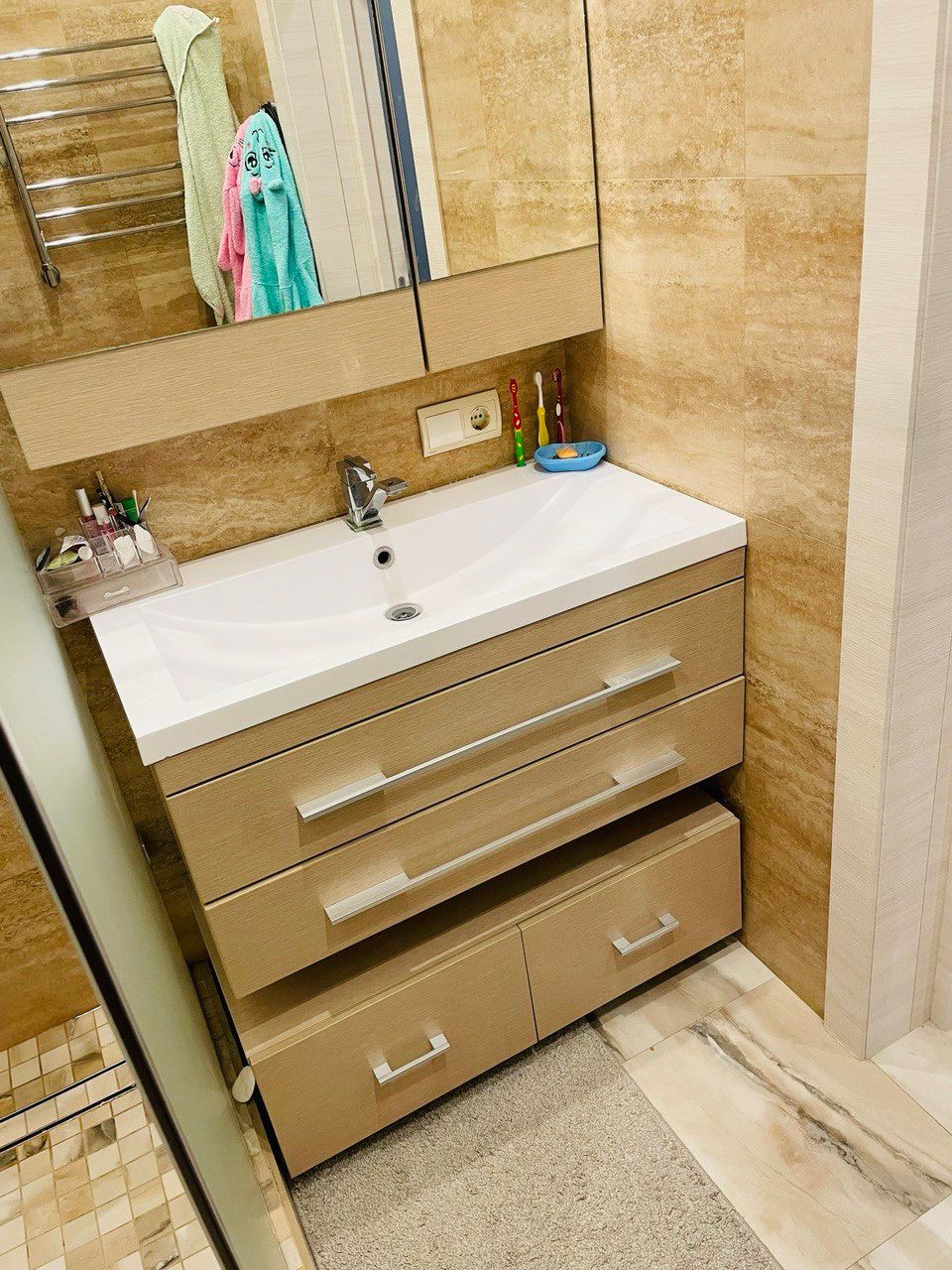- На фотографиях квартиры показана мебель, бытовая техника, оборудованная ванная комната и туалет. Квартира продается в том виде, что на фото ;