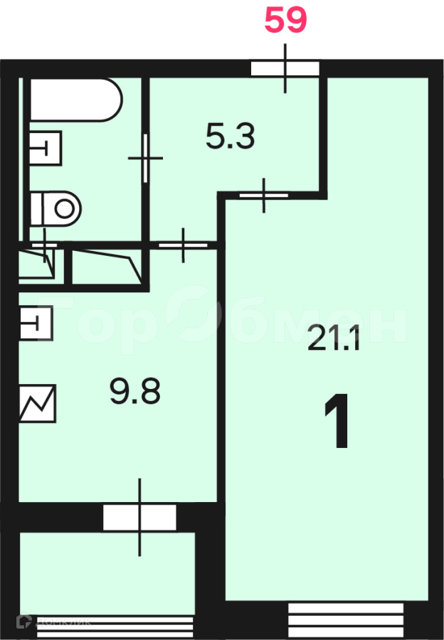 Жилая площадь 21.1 м2
