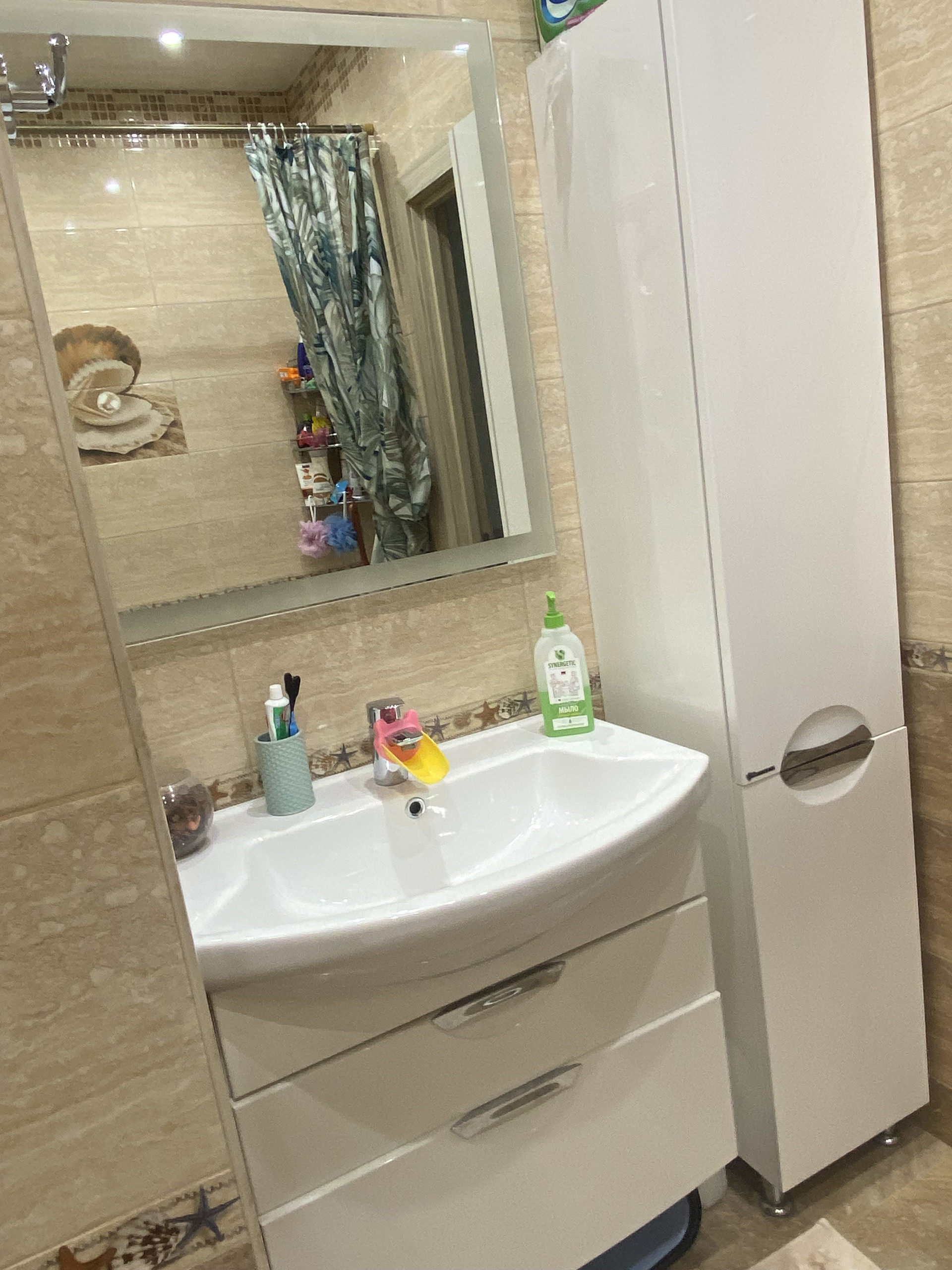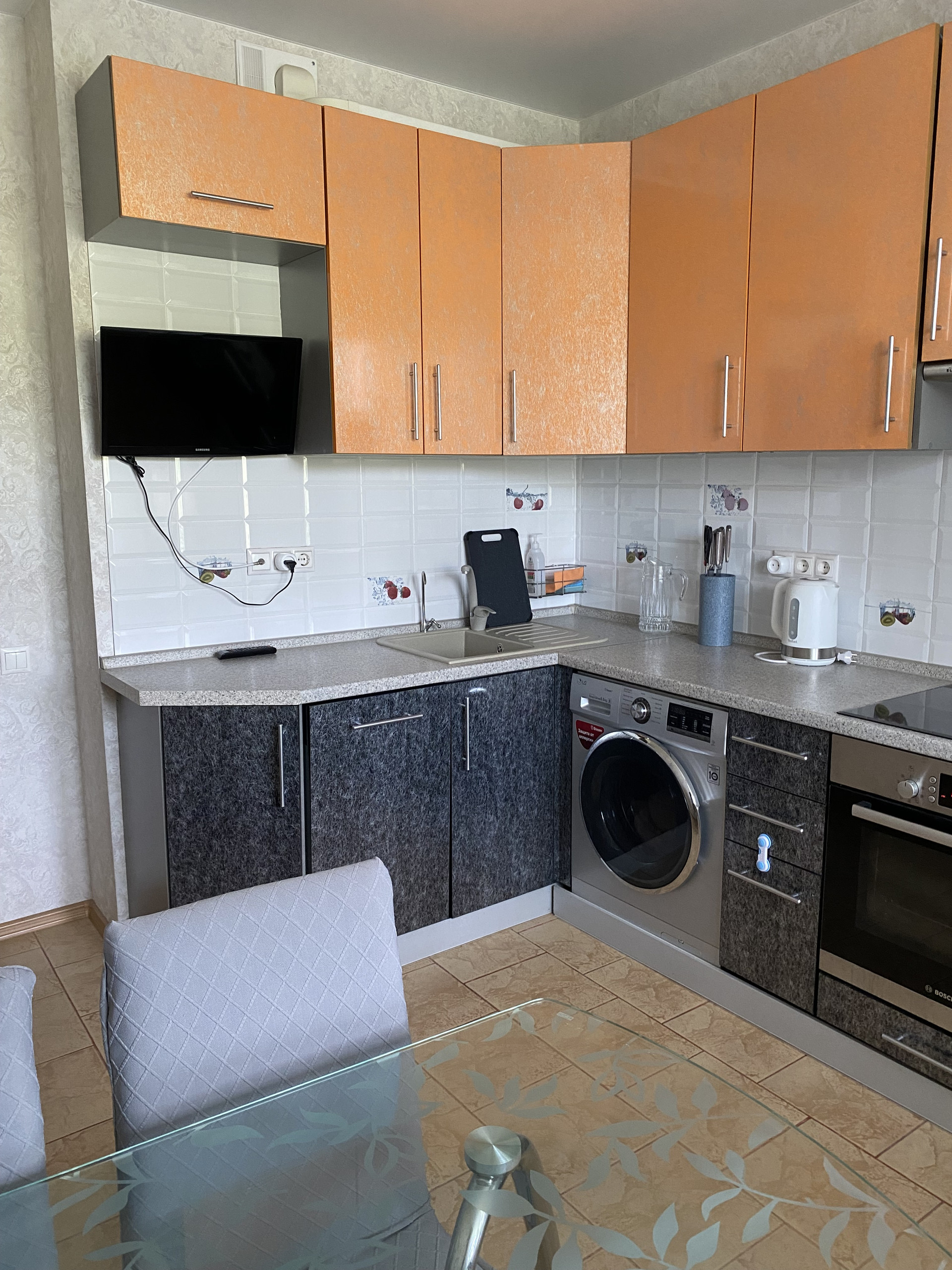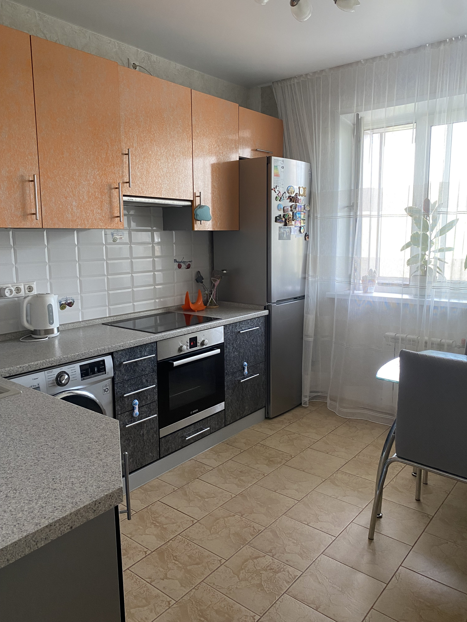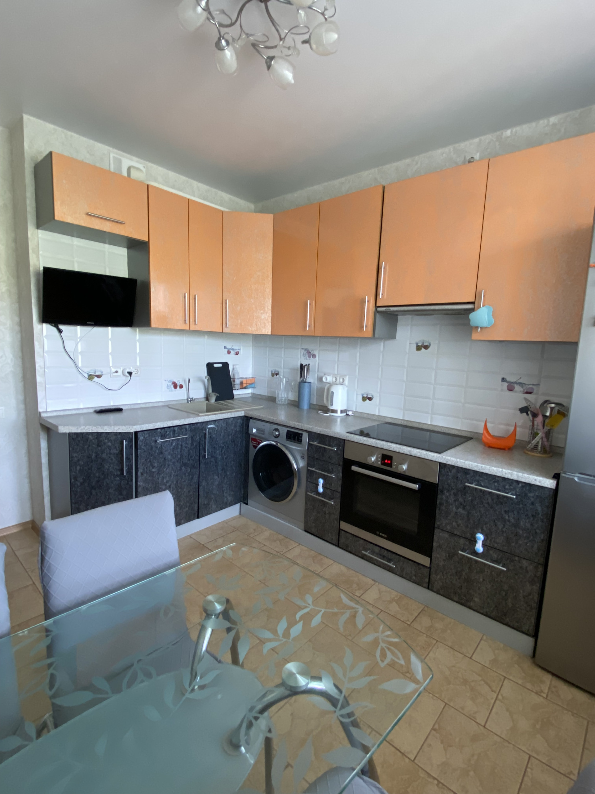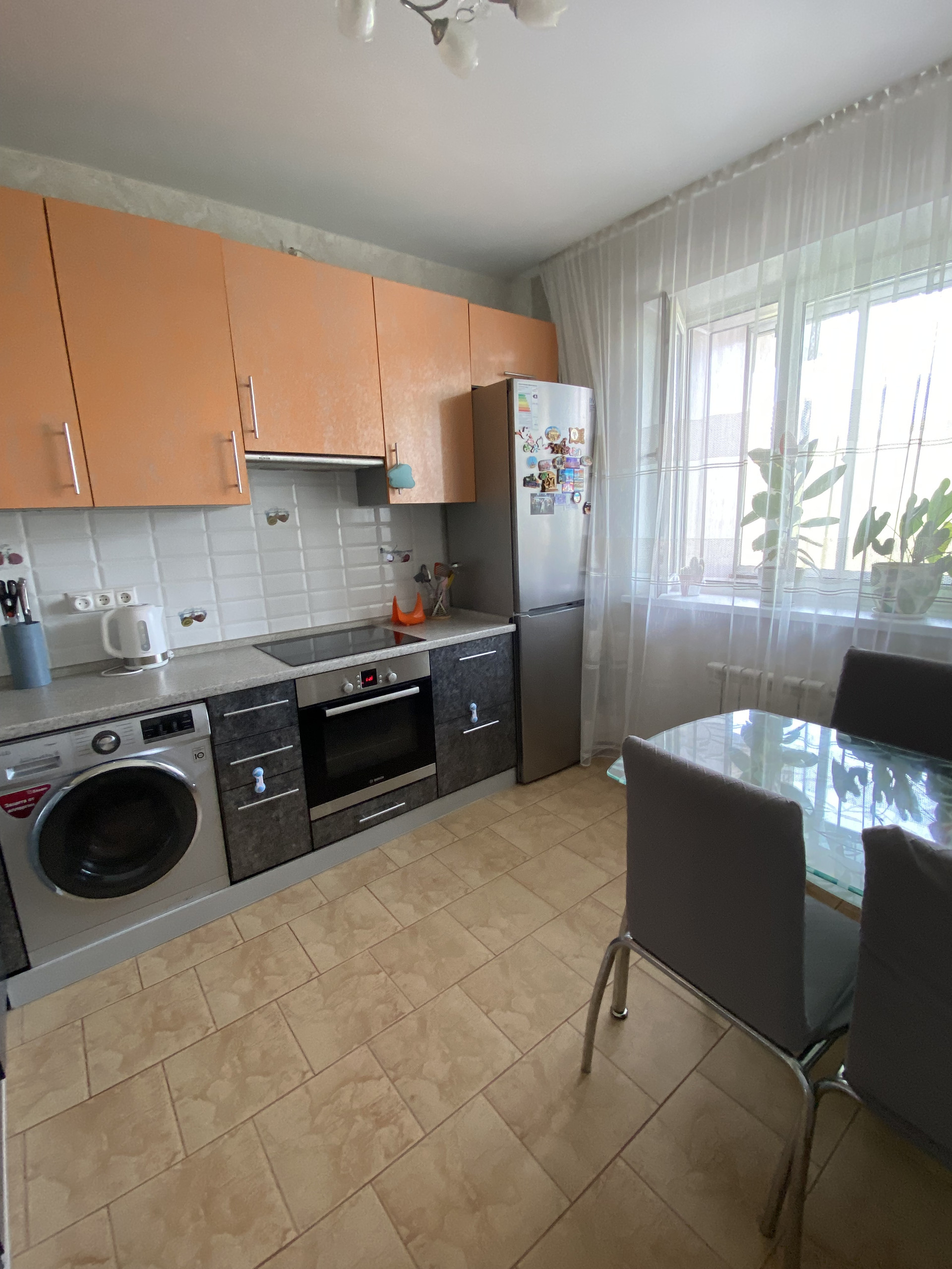 В квартире остаётся: кухня - вся встраиваемая мебель и техника (холодильник, варочная панель, духовой шкаф, посудомоечная машина), стол и стулья; комната – шкаф, диван, стенка, кондиционер)  Заезжай и живи!!!