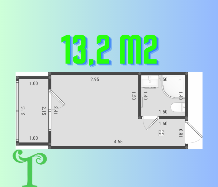 Общая площадь 13.2 м2