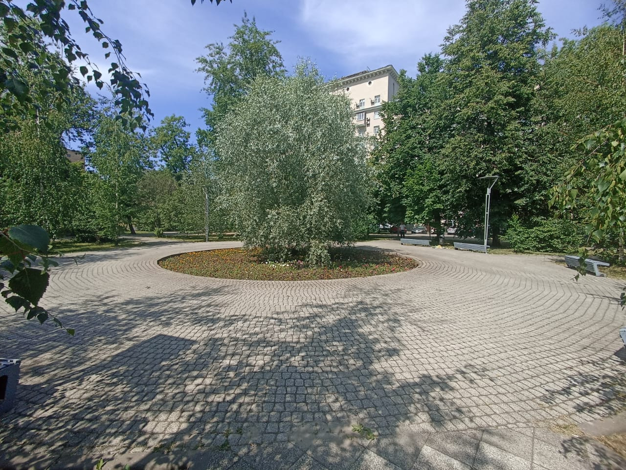 - Во двое очень много зелени деревьев,