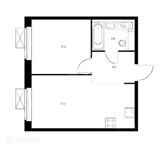 В квартире: изолированная спальня, кухня-гостиная с зоной для отдыха и гостей.