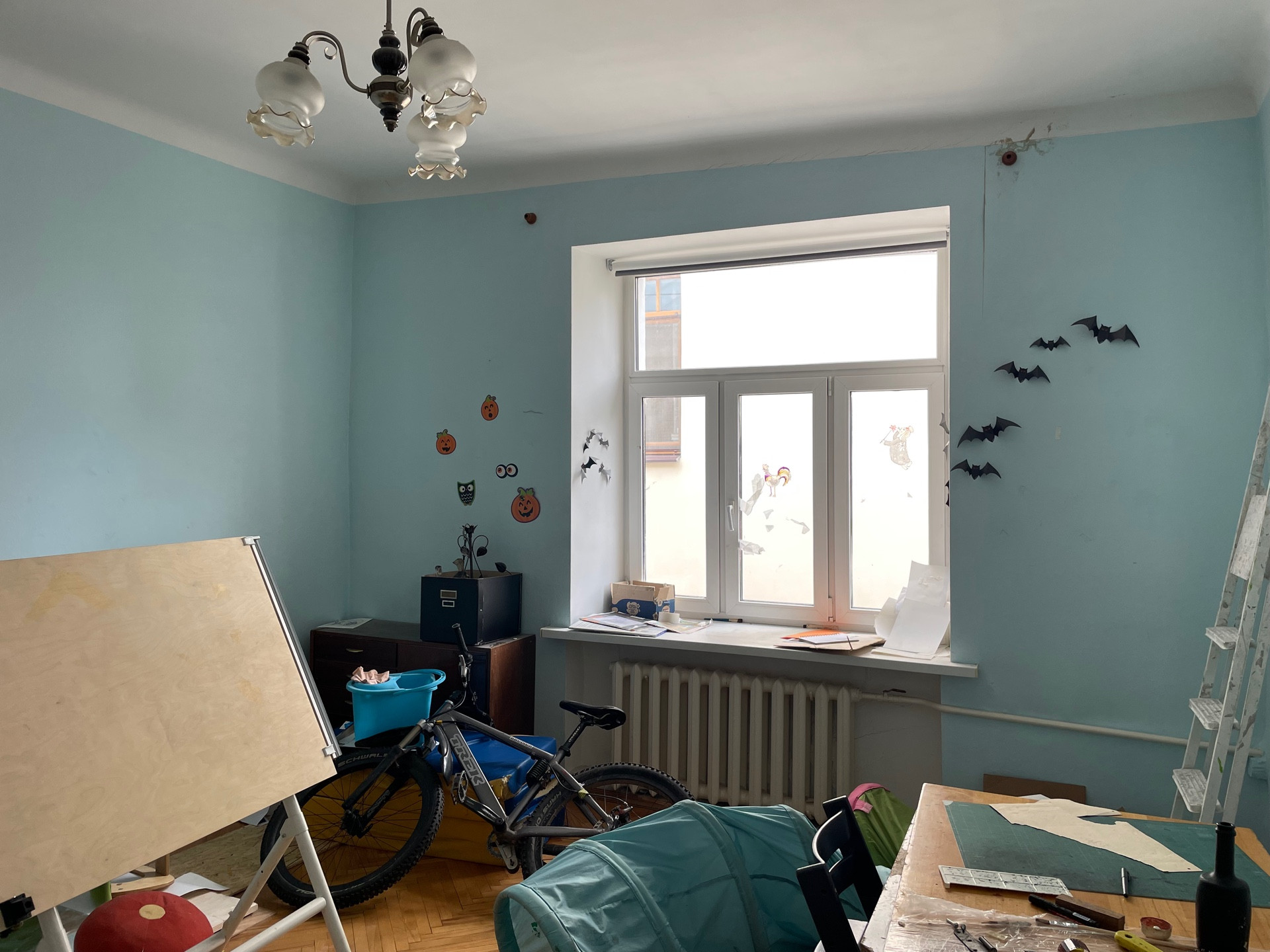 Квартира в хорошем состоянии: выровнены и окрашены стены, установлены стеклопакеты.