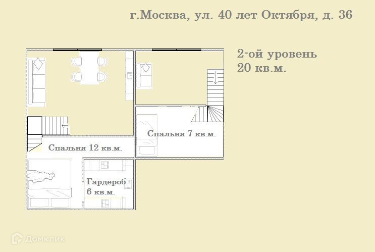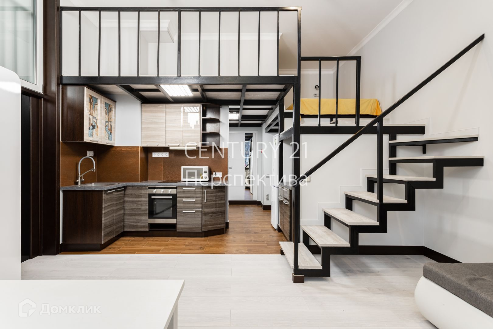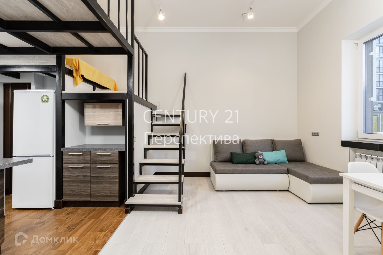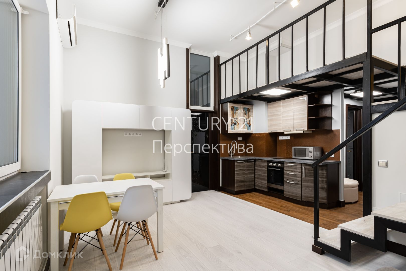 Продаётся двухуровневая квартира с потолками 3,6 м. в новом монолитном доме бизнес-класса. Общая площадь квартиры составляет 42,3 кв.м. На первом этаже при входе расположен совмещенный санузел и гардеробная, кухня, объединена с гостиной (22,2 кв.м.), и изолированная комната. На втором этаже расположены две спальни, дополнительное место для хранения и рабочая зона, что увеличивает полезную площадь на 20 кв.м.