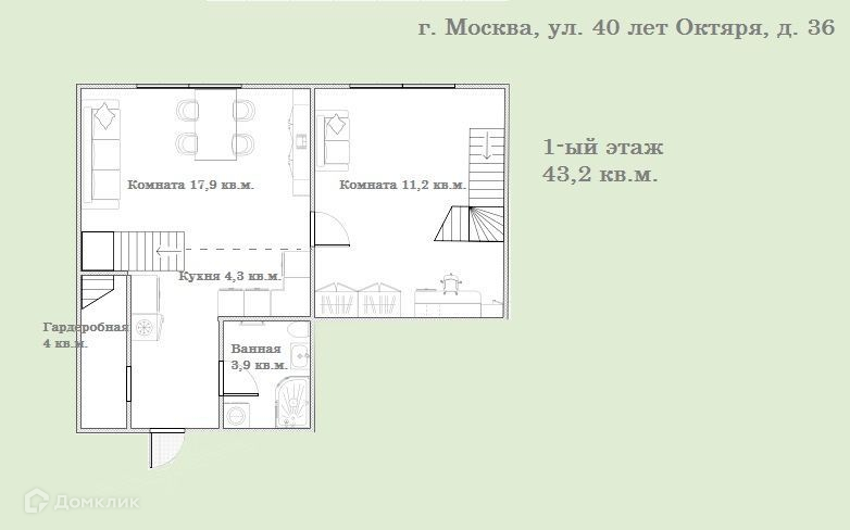 2-комнатная квартира, 63 м2, этаж 1 / 13, на продажу в Москве, проспект 40 лет Октября, 36