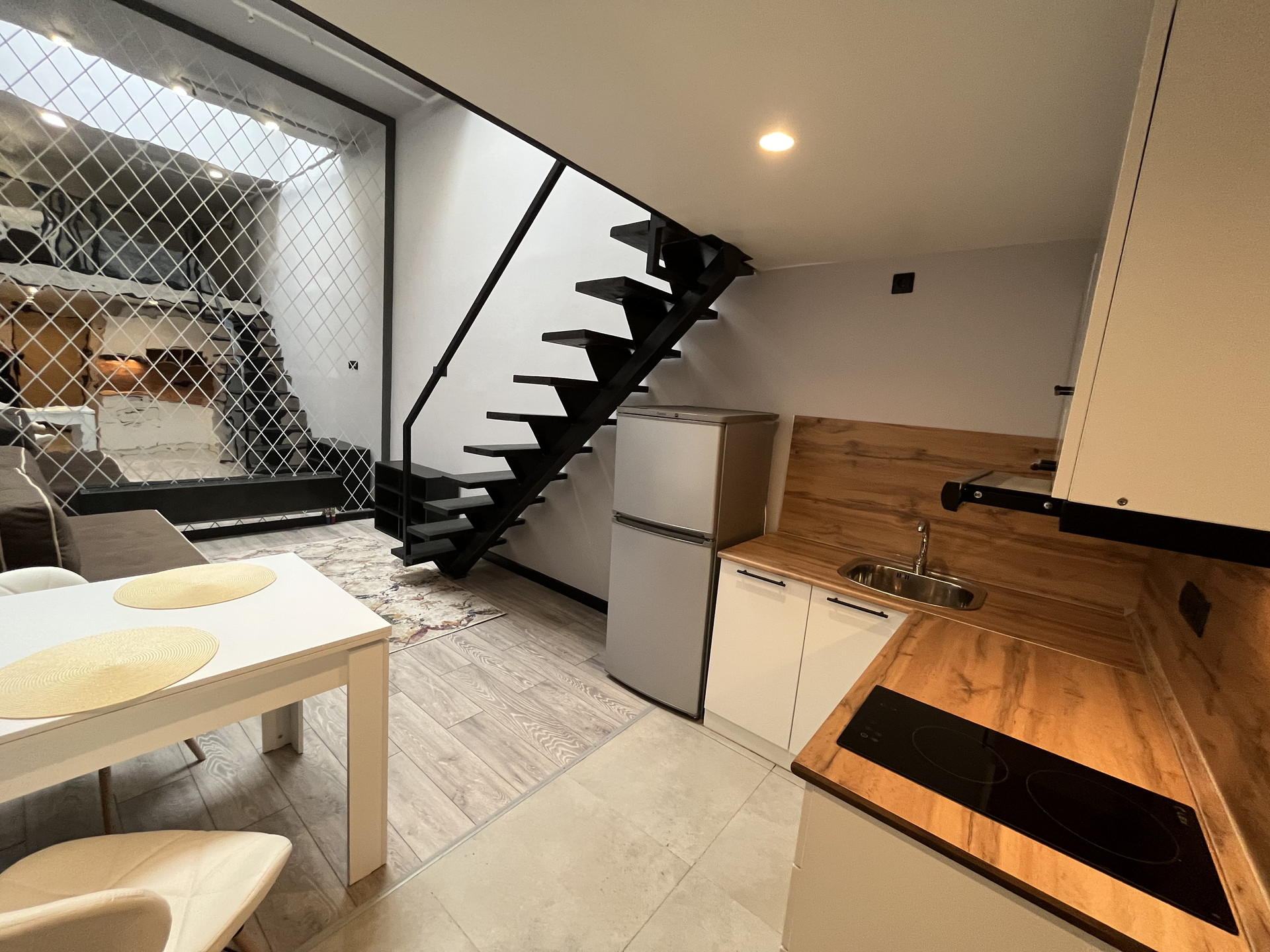 Предлагаем Вашему вниманию безумно красивый и стильный апартамент. Грамотно все спланировано. Очень просторный. Высокие потолки. В прихожей встроенный шкаф со встроенной стиральной машинкой, обустроена ванная комната, качественная сантехника, подогрев пола. Гостиная разделена на столовую зону и зону отдыха, гостиной. На кухне встроенный кухонный гарнитур. Посудомоечная машинка, варочная панель, вытяжка, холодильник. Обеденный стол раскладывается, очень большой, функциональный. Диван двуспальный с ящиком для хранения белья и твердый качественный матрас.