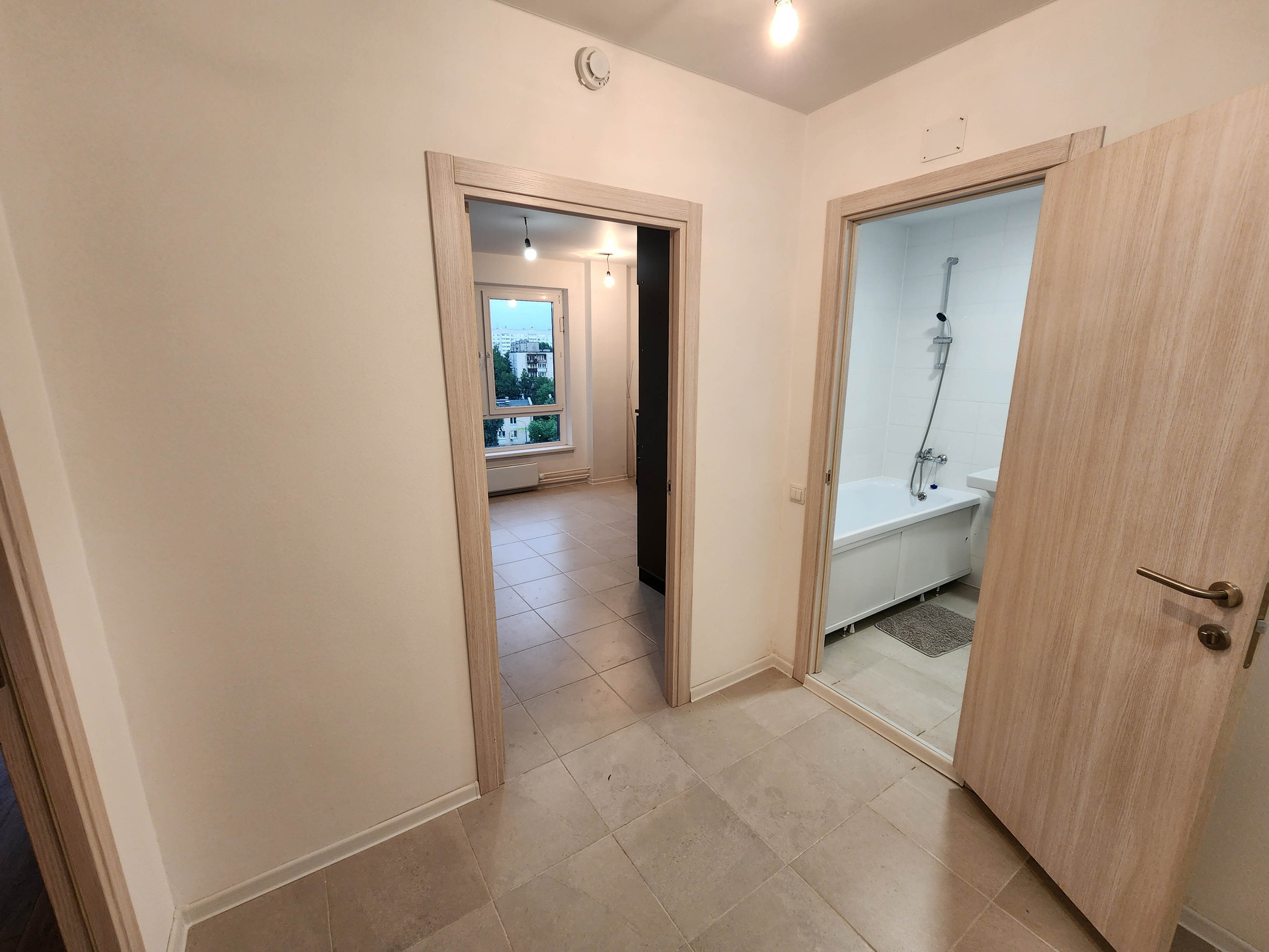 Просторна однокомнатная квартира площадью 42,4 м2 с чистовой отделкой. Окна выходят на улицу, просторный вид из окна. Светлая входная группа на уровне земли, функциональная планировка, большие окна. Вход в дом, а также на этаж осуществляется по электронному ключу или через IP-видеодомофон с Face-ID.