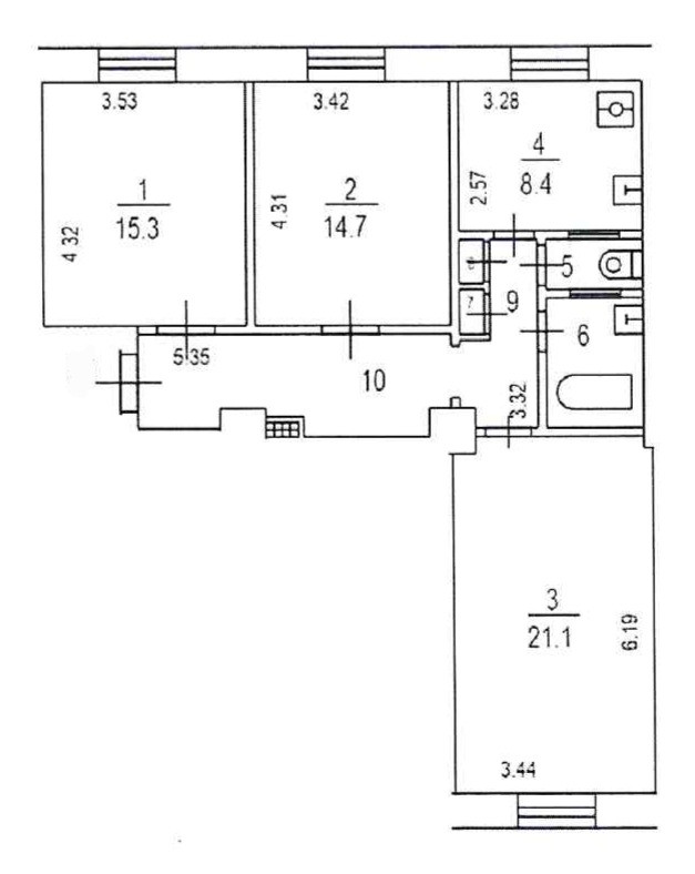 Количество комнат 3