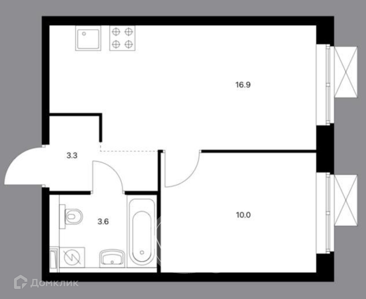 Общая площадь 33.8 м2