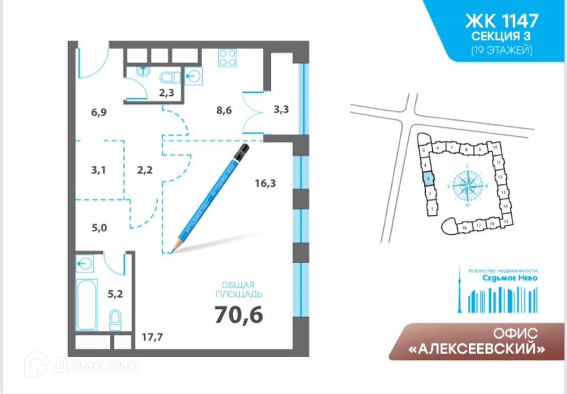 Общая площадь 71 м2