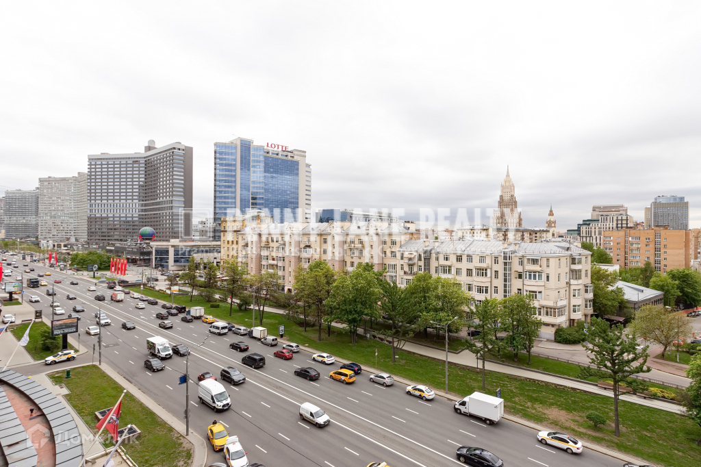Окна выходят в сторону Нового Арбата с видами на Москву-Сити и гостиницу Украина.