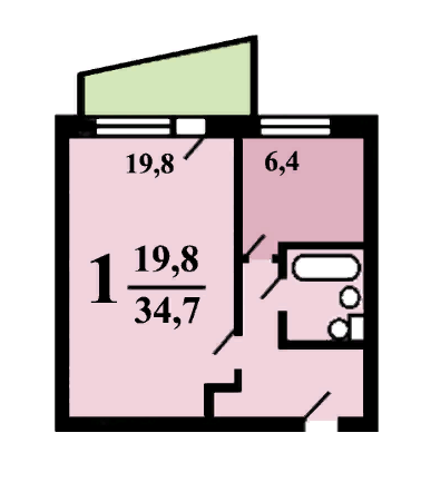 Общая площадь 35.2 м2