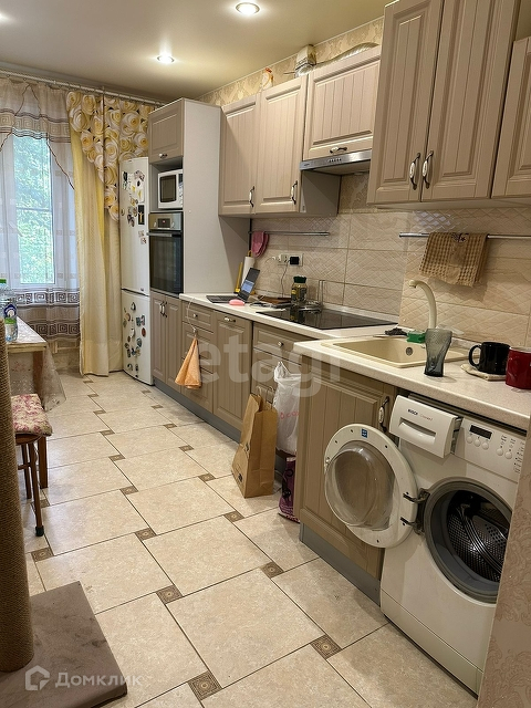 Квартира расположена в зеленом спальном районе Москвы.