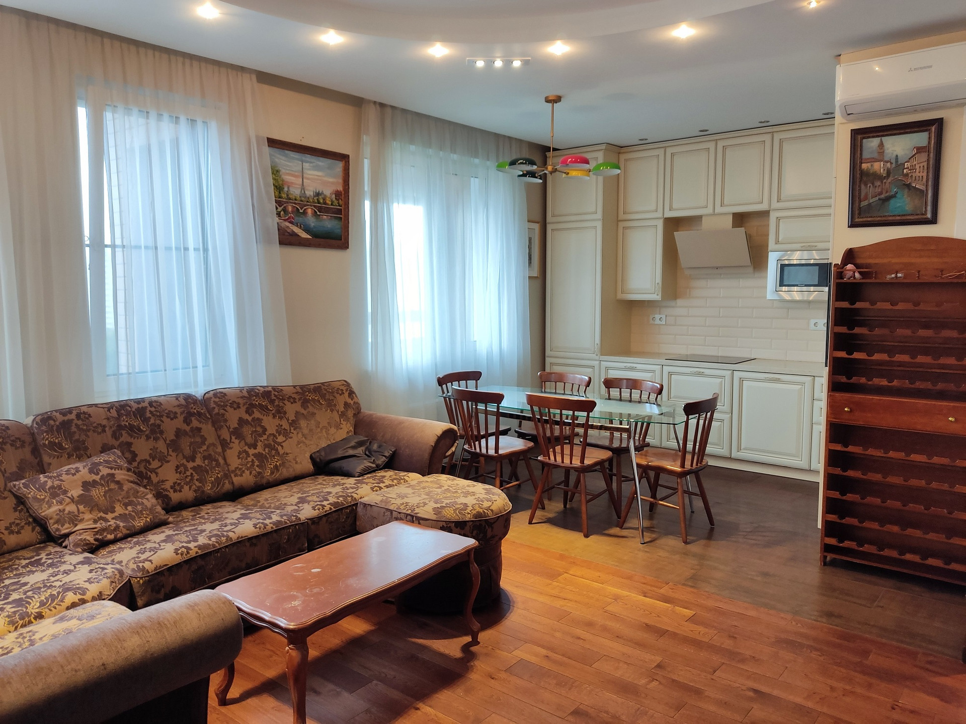 ✔ Квартира с ремонтом, комнаты - на полу доска массив, кухонная зона - керамогранит, современная электрика и освещение, подвесной унитаз, тропический душ. В гостиной установлен кондиционер. Кухня с встроенной бытовой техникой. Высота потолка сейчас 2.84м.