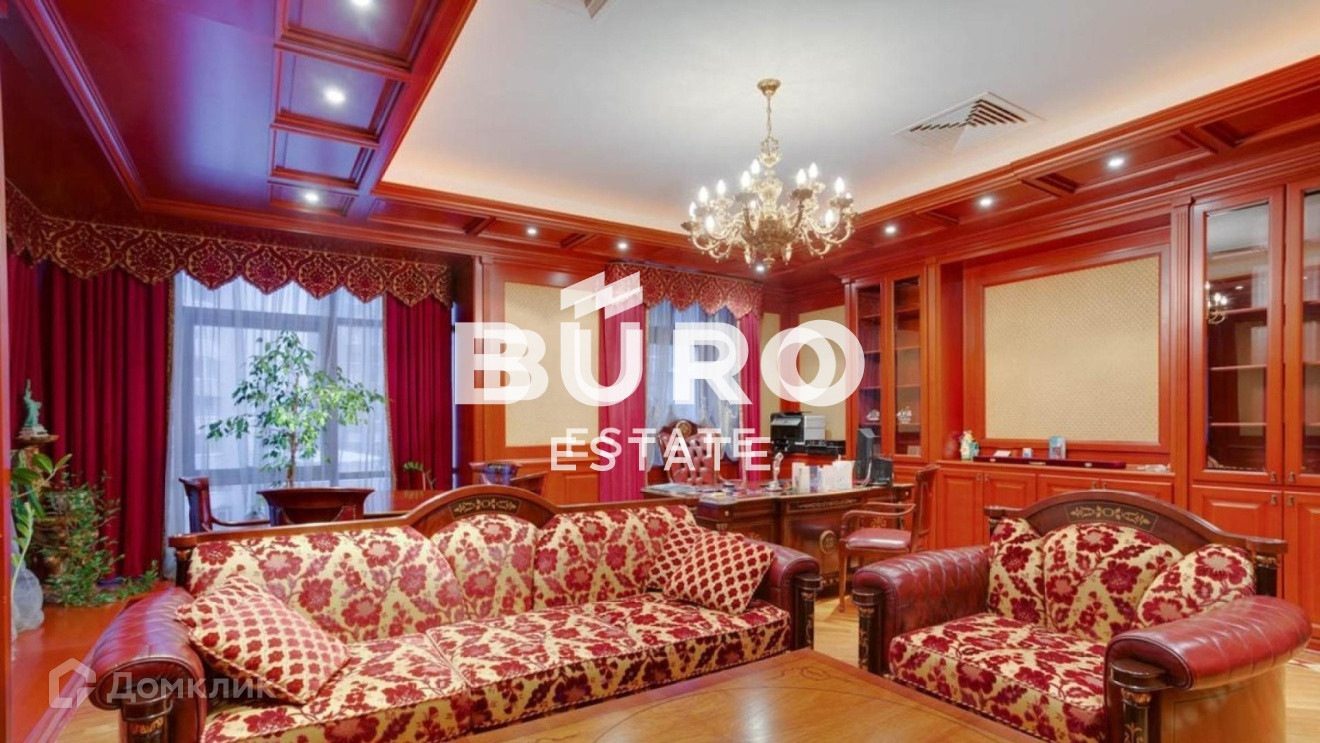 и дровяным камином, кухню, кабинет, пять спален, четыре санузла, постирочную, винотеку и сауну. Есть терраса. В отделке использованы дорогостоящие материалы. Пространство оформлено в классическом стиле: итальянская мебель, лепнина, роспись на потолке, массивные хрустальные люстры, резные стулья, объемные портьеры и изысканные предметы декора. Окна ориентированы на 2 стороны: в 1-й Неопалимовский переулок и во двор.