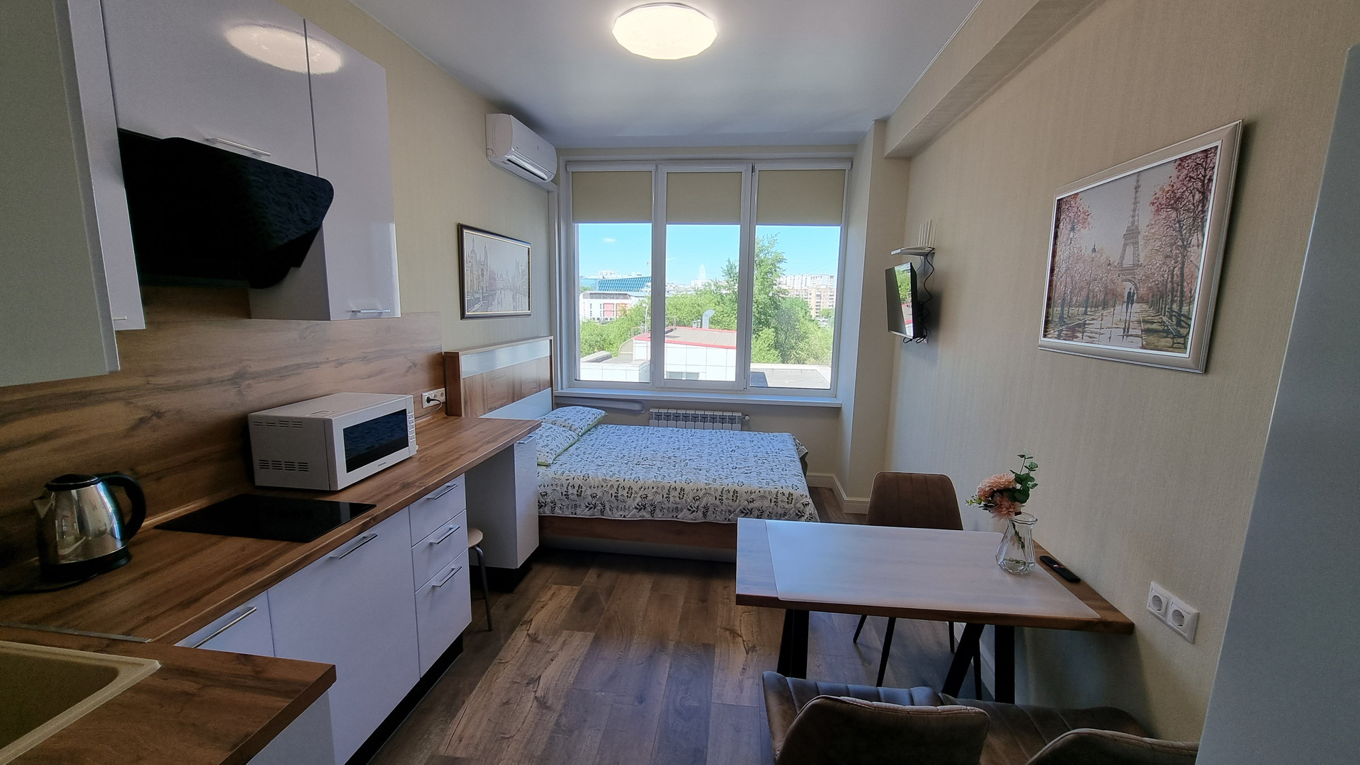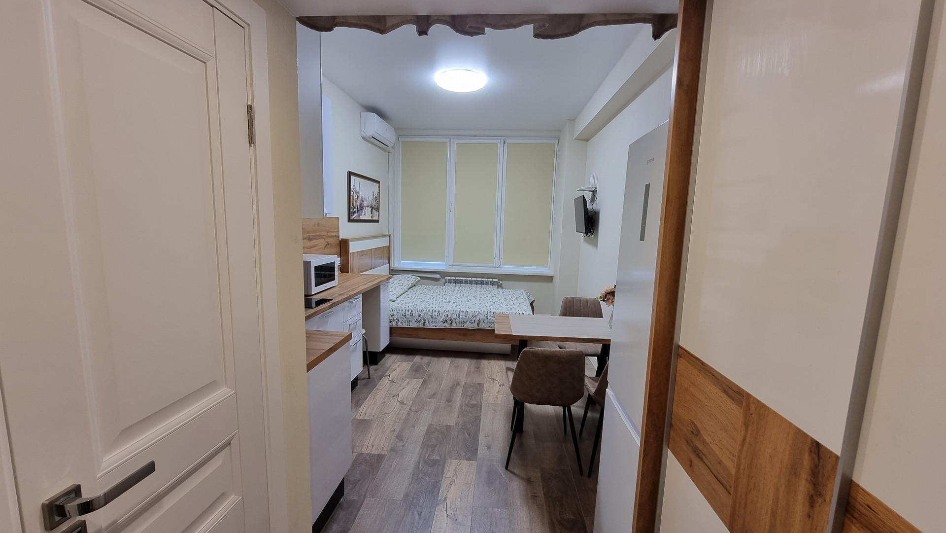 Возможно использовать студию, как готовый арендный бизнес: при сдаче в аренду, доход 45000 рублей в месяц.