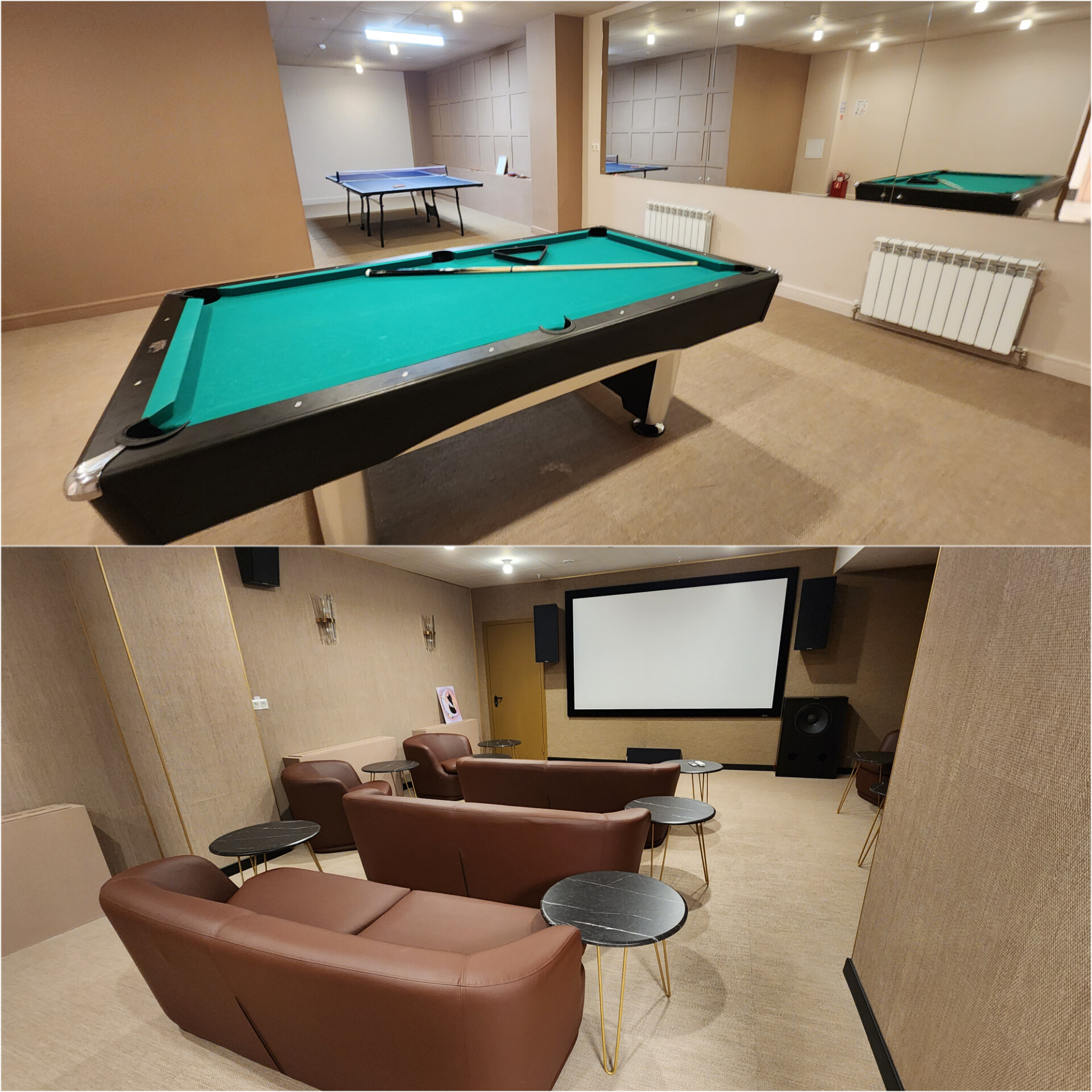 - для жителей комплекса бесплатно предоставляются: фитнес зал с кардиотренажерами, бильярдный стол и стол для игры в настольный теннис, зона отдыха с лежаками (в теплое время года), кинозал для просмотра фильмов на большом экране;