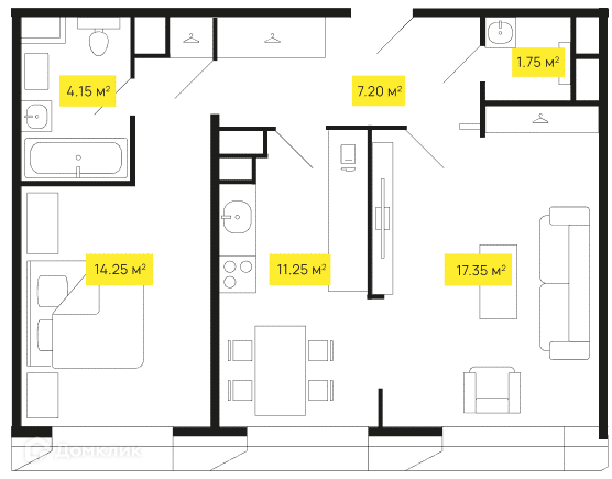 Общая площадь 55 м2