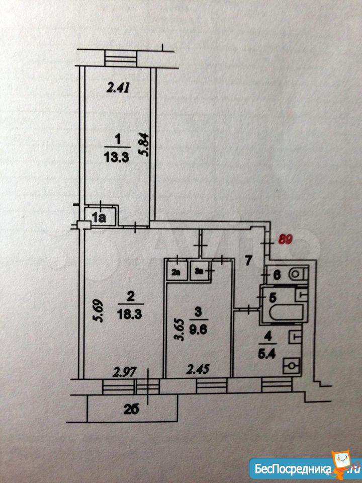 Общая площадь 57.5 м2