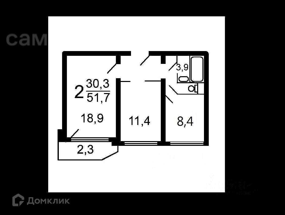 Общая площадь 51.7 м2