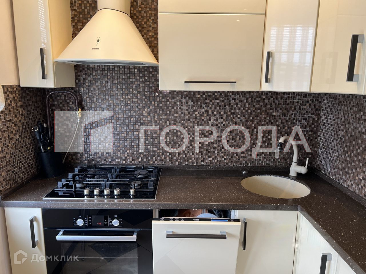 На кухне есть абсолютно вся необходимая современная мебель и встроенная техника.