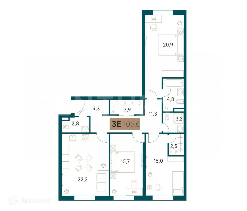Общая площадь 106.6 м2